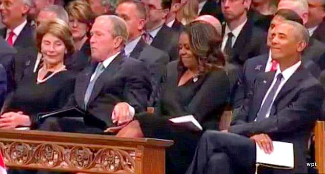 At the funeral of John McCain, the families of the former Presidents of America, were both sitting together. All of a sudden, a camera caught George W Bush, taking some candy or mint or some kind of sweet from his wife, Laura Bush and handing it over to Mrs. Obama who is believed to have said the words, “Thank you.”